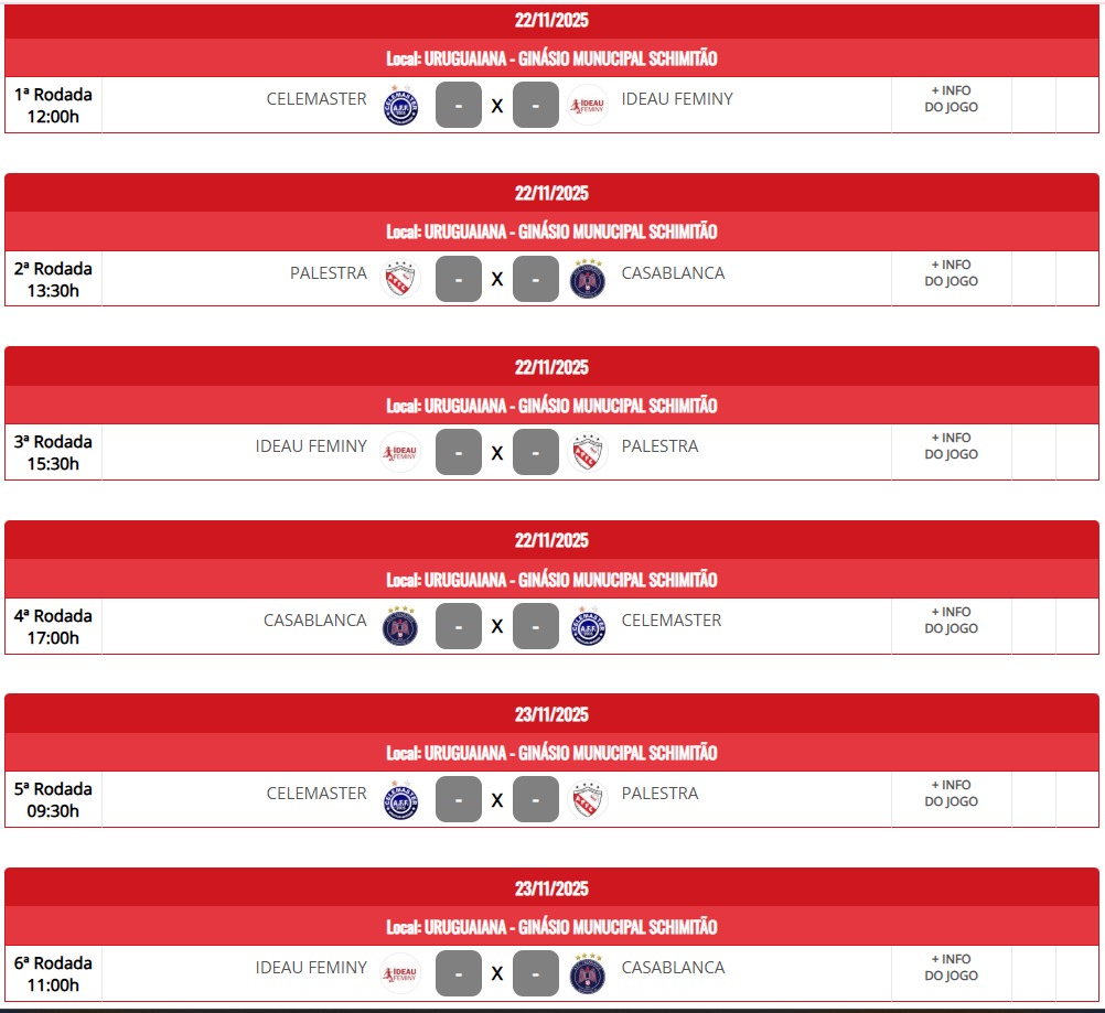 A competição contará com a participação de quatro fortes equipes: IDEAU Feminy, Celemaster, Palestra e Casablanca.