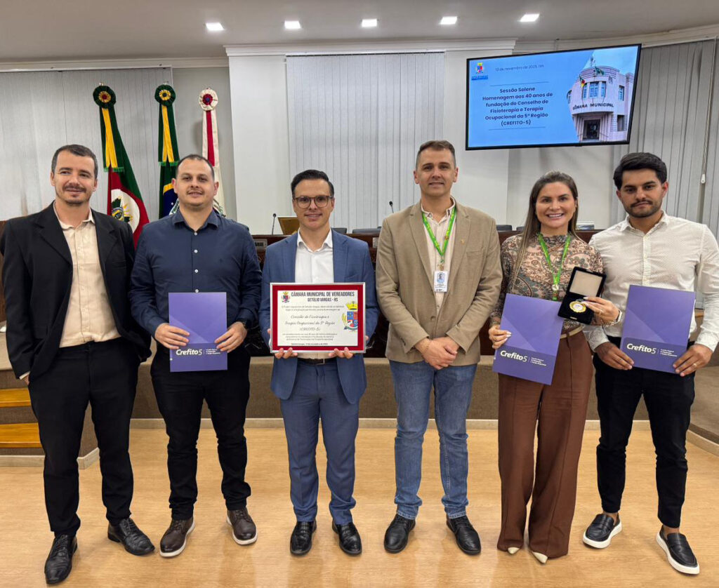 Na noite desta quinta-feira (13), a Câmara de Vereadores de Getúlio Vargas foi palco de uma Sessão Solene em homenagem aos 40 anos de fundação do Conselho Regional de Fisioterapia e Terapia Ocupacional da 5ª Região (Crefito-5). O evento celebrou a trajetória da entidade e sua importância na regulamentação e fortalecimento das profissões.