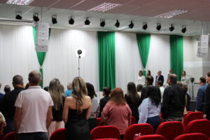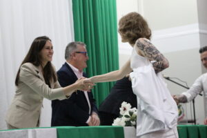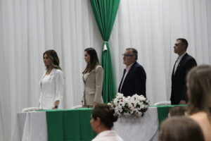 Representando os colegas, o discente Eduardo Konrad fez uso da palavra, seguido pelo Diretor Vagner Luiz Bazzanello e pela Pró-Reitora Dânia Barro, que reforçaram a missão institucional de “oportunizar, por meio do ensino de excelência, o aperfeiçoamento teórico e prático para a formação humana e o desenvolvimento da sociedade.”